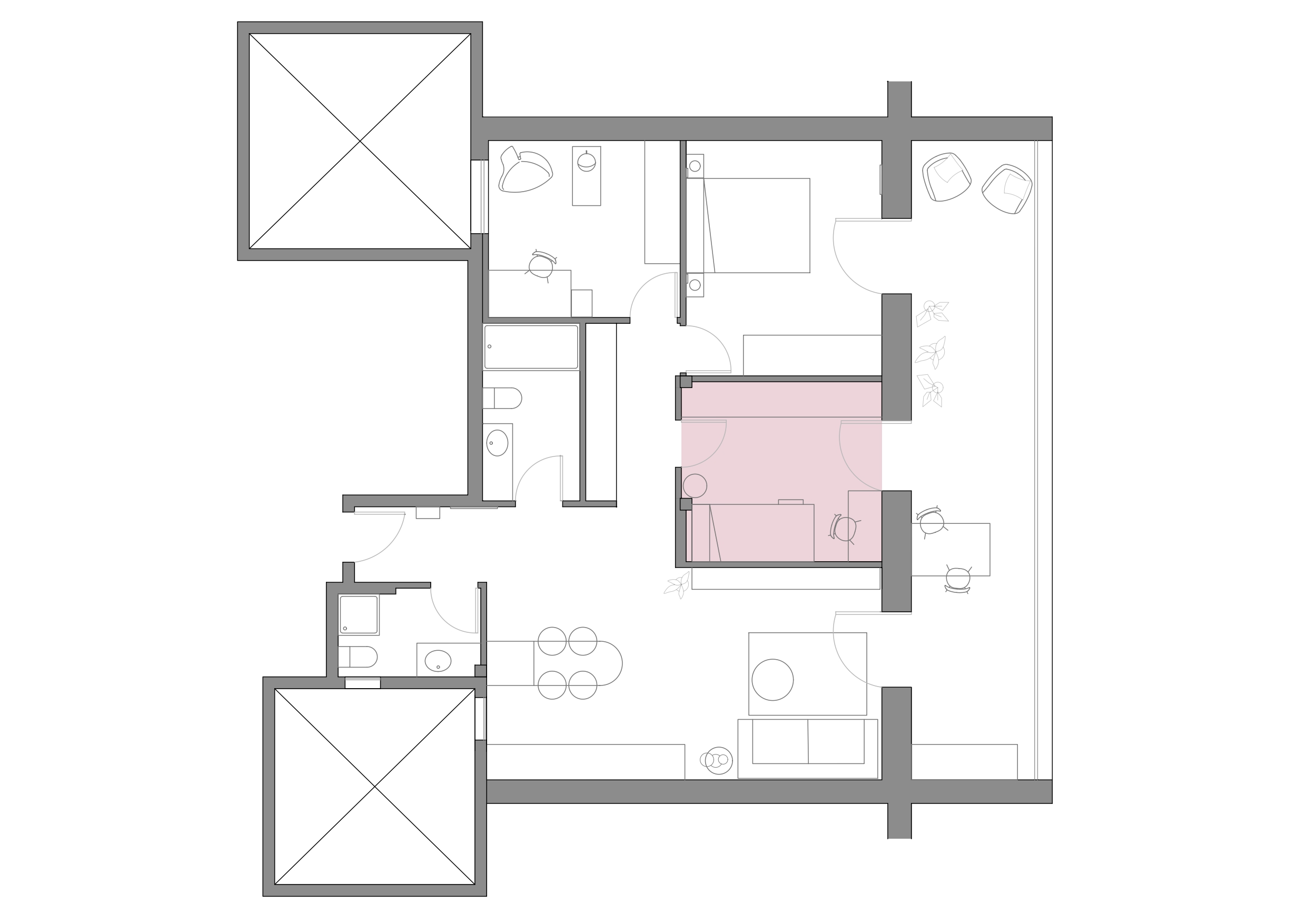 Esta habitación la hemos diseñado en el estudio Batlló Concept y también hemos llevado a cabo el interiorismo del resto de la vivienda, perteneciente al proyecto [Miracruz]. Los muebles, el textil y toda la decoración, es de nuestra tienda.