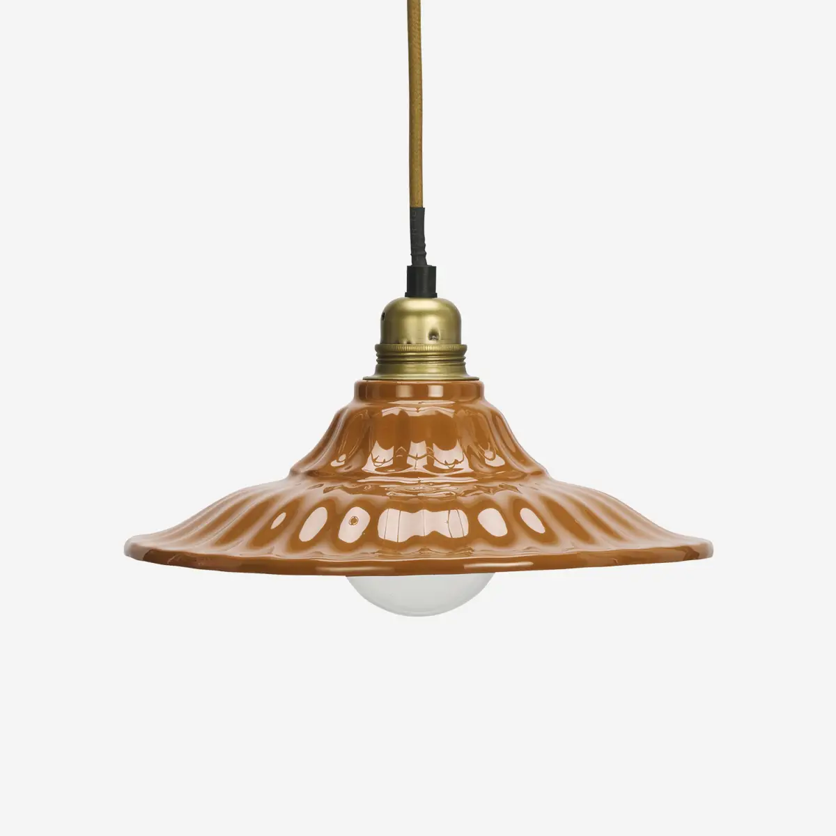 Dale un toque de personalidad a tu hogar con la lámpara Eli. Su diseño industrial con esmalte brillante en color ambar y detalles en latón hace que incluso los rincones más serios se sientan acogedores y con estilo.